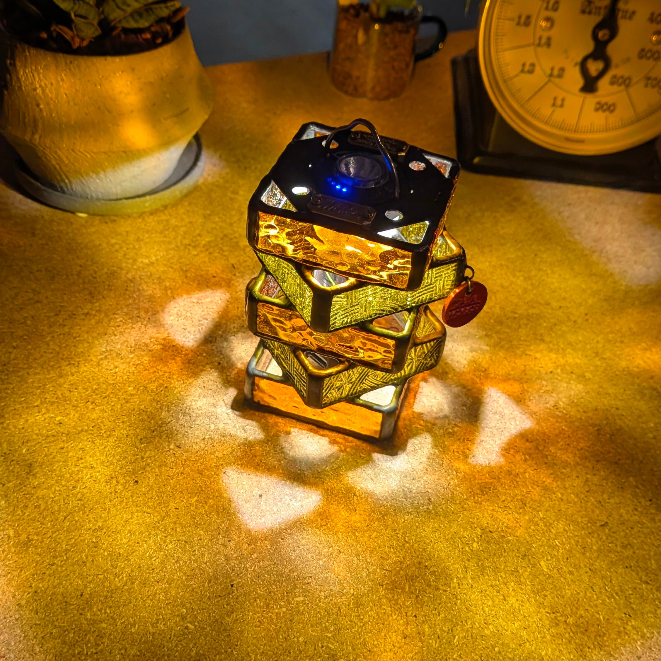 キャンプの夜を幻想的に照らすのはもちろん、日中の太陽光に透かせば、ガラス本来の圧倒的な透明感と美しさをお楽しみいただけます。アウトドアだけでなく、ご自宅のインテリアとしても日常に溶け込むオリジナルデザインです。